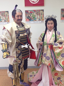 【信長役の竹田尚司さんと 【秀吉役の近見剛太郎さんと