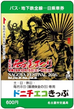 HOME > 更新情報一覧 > 名古屋まつり記念ドニチエコきっぷ(市バス・地下鉄全線一日乗車券)発売!